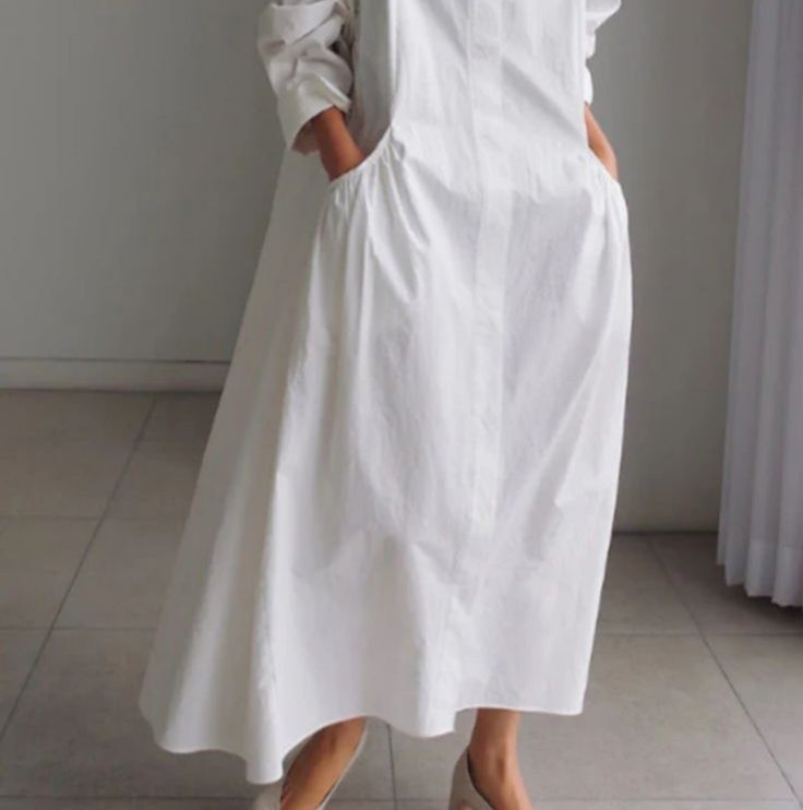 فستان أبيض كاجوال من Turkish gabardine ✨ Simple. Chic. Effortless.
